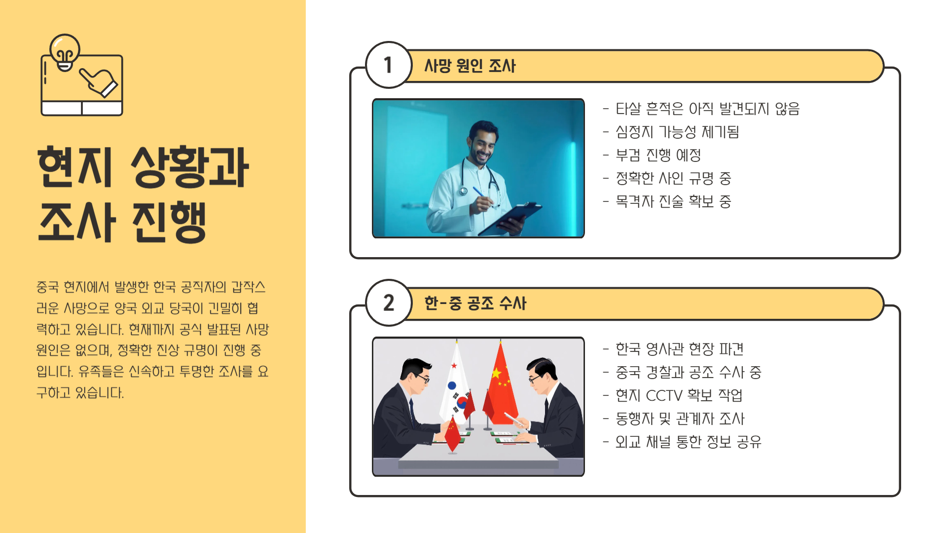 ✅ “출장 중 갑자기 숨졌다”는 소식에 지역사회는 술렁이고, 여러 의혹과 추측이 쏟아지고 있는데요. 오늘은 사건 경위와 공식 조사 상황, 그리고 남은 의문점을 정리해 보겠습니다.